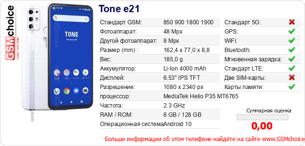 Данные о телефоне Tone e21 на Вашем сайте