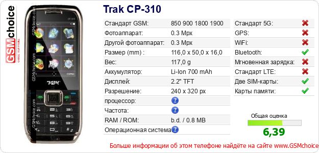 Данные о телефоне Trak CP-310 на Вашем сайте