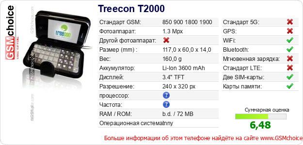 Данные о телефоне Treecon T2000 на Вашем сайте