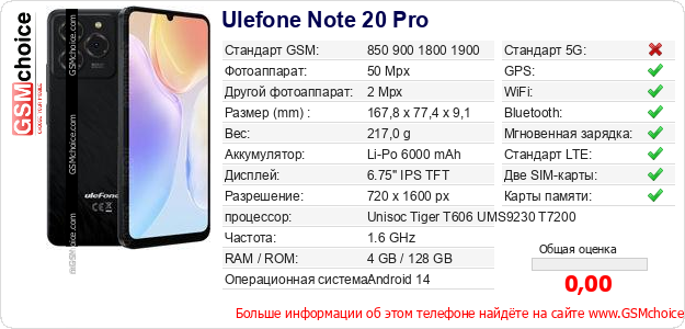 Данные о телефоне Ulefone Note 20 Pro на Вашем сайте