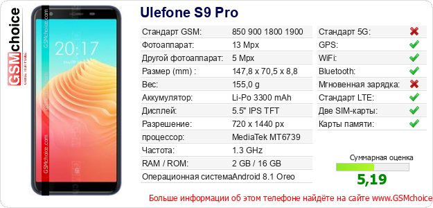 Данные о телефоне Ulefone S9 Pro на Вашем сайте