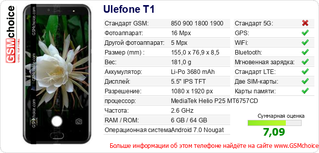 Данные о телефоне Ulefone T1 на Вашем сайте