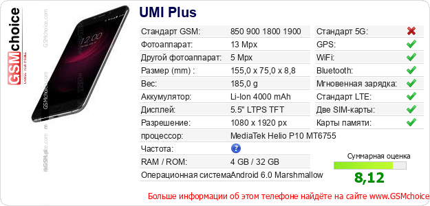 У Тебя есть свой сайт? Хочешь где-то разместить информацию о базовых данных мобильника UMI Plus ? Это запросто устроить. Достаточно скачать картинку или скопировать и разместить на соответствующем сайте нижерасположенный код:Размещение этого кода вызовет появление нижерасположенной картинки:
