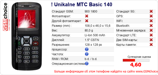 Данные о телефоне ! Unikalne MTC Basic 140 на Вашем сайте