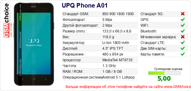 Данные о телефоне UPQ Phone A01 на Вашем сайте