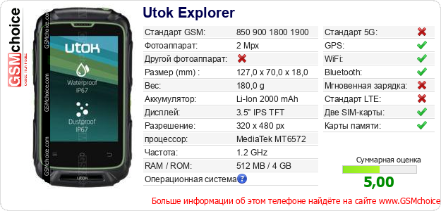 Данные о телефоне Utok Explorer на Вашем сайте