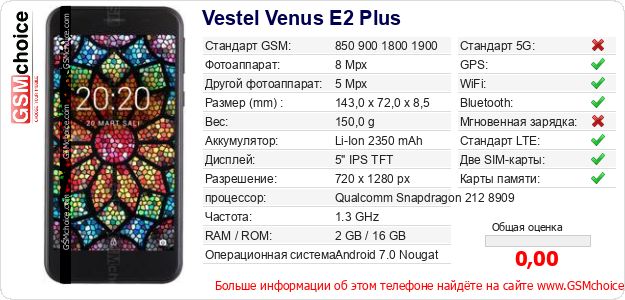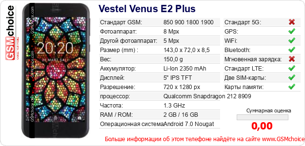 Данные о телефоне Vestel Venus E2 Plus на Вашем сайте