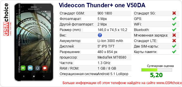 Данные о телефоне Videocon Thunder+ one V50DA на Вашем сайте