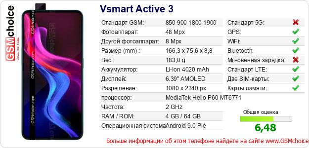 Данные о телефоне Vsmart Active 3 на Вашем сайте