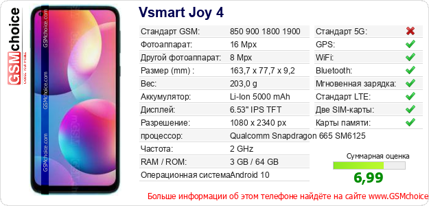 Данные о телефоне Vsmart Joy 4 на Вашем сайте