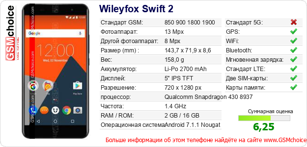 Данные о телефоне Wileyfox Swift 2 на Вашем сайте