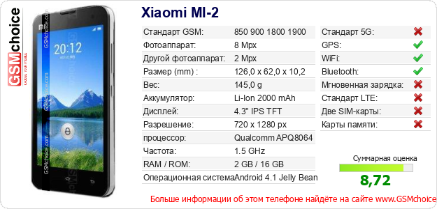 Данные о телефоне Xiaomi MI-2 на Вашем сайте