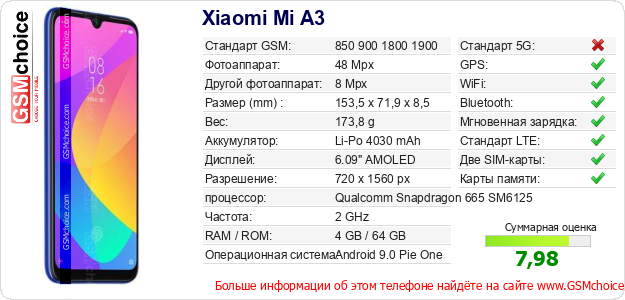 Данные о телефоне Xiaomi Mi A3 на Вашем сайте