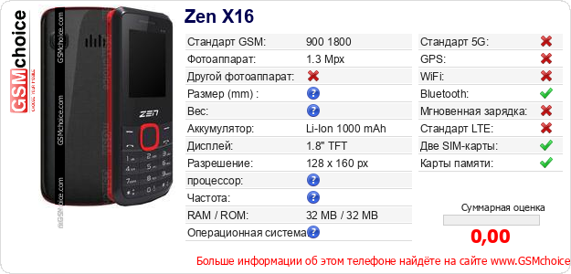 У Тебя есть свой сайт? Хочешь где-то разместить информацию о базовых данных мобильника Zen X16 ? Это запросто устроить. Достаточно скачать картинку или скопировать и разместить на соответствующем сайте нижерасположенный код:Размещение этого кода вызовет появление нижерасположенной картинки:
