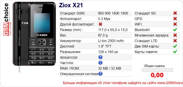 Данные о телефоне Ziox X21 на Вашем сайте
