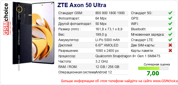 Данные о телефоне ZTE Axon 50 Ultra на Вашем сайте