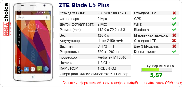 Данные о телефоне ZTE Blade L5 Plus на Вашем сайте