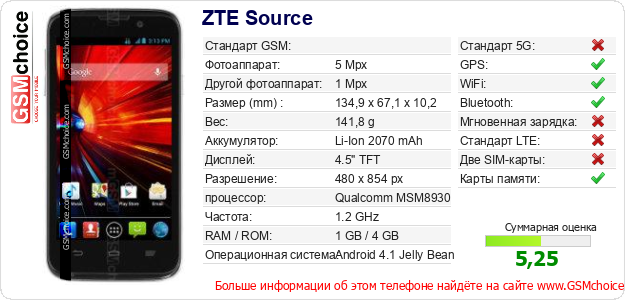Данные о телефоне ZTE Source на Вашем сайте